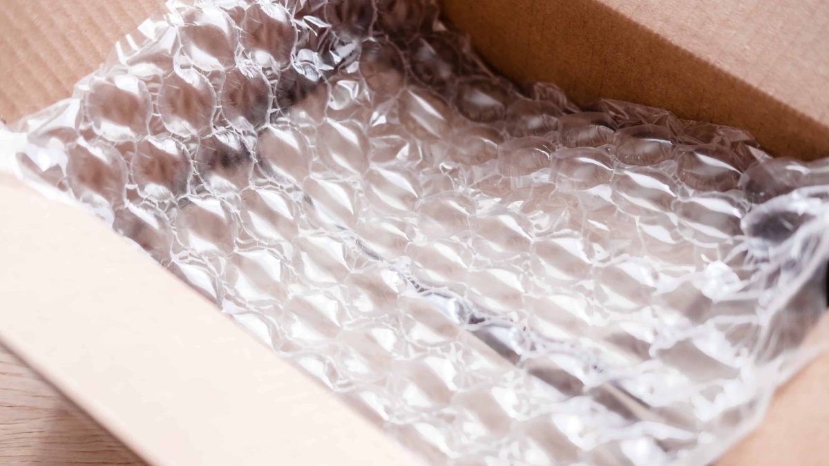 اقلام را به طور ایمن در نایلون حبابدار بپیچید و مطمئن شوید که هیچ شکافی وجود ندارد.